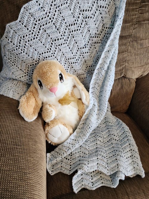 For those who enjoy adjusting patterns, it’s very easy to personalize. The pattern is worked in multiples of 16 chains, plus 3 to begin. Want it wider? Add 16 chains for each additional “v” section.